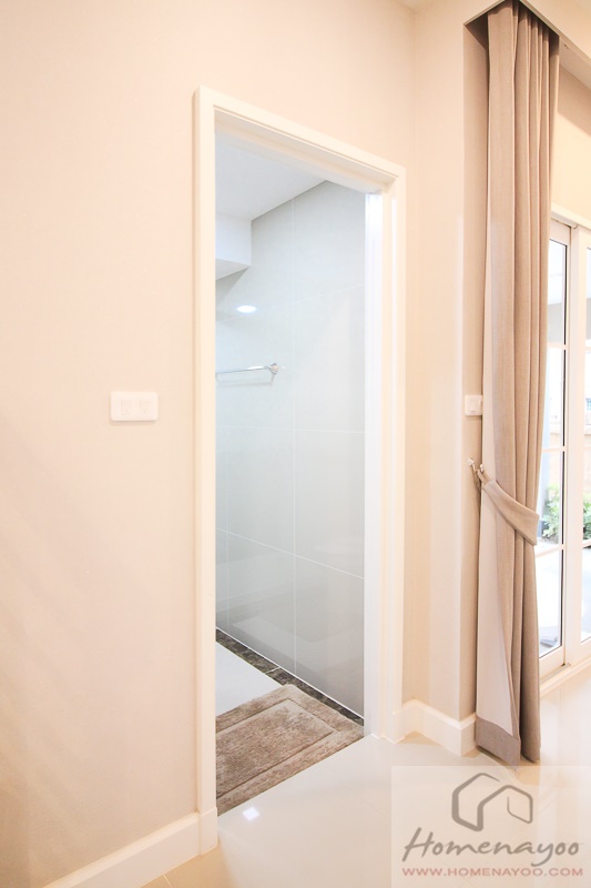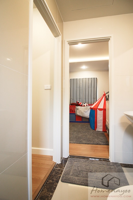 มองจากภายในห้องน้ำจะเห็นว่าเจาะประตูทางเข้าให้แบบนี้ทั้งจากฝั่งห้องนอน 2 และ 3
