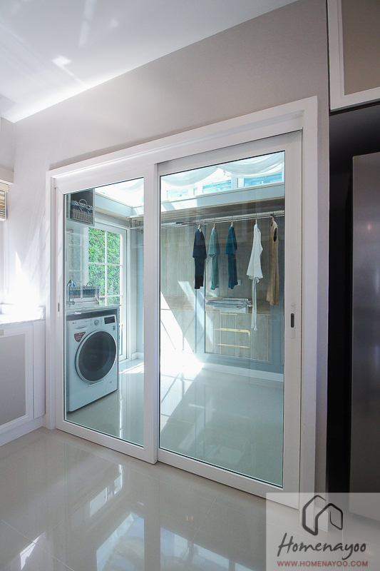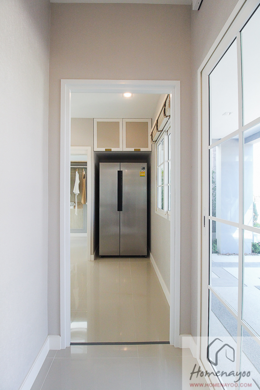 จากห้องครัวจะมีประตูกั้นแยกเป็นสัดส่วนจากห้องซักรีด