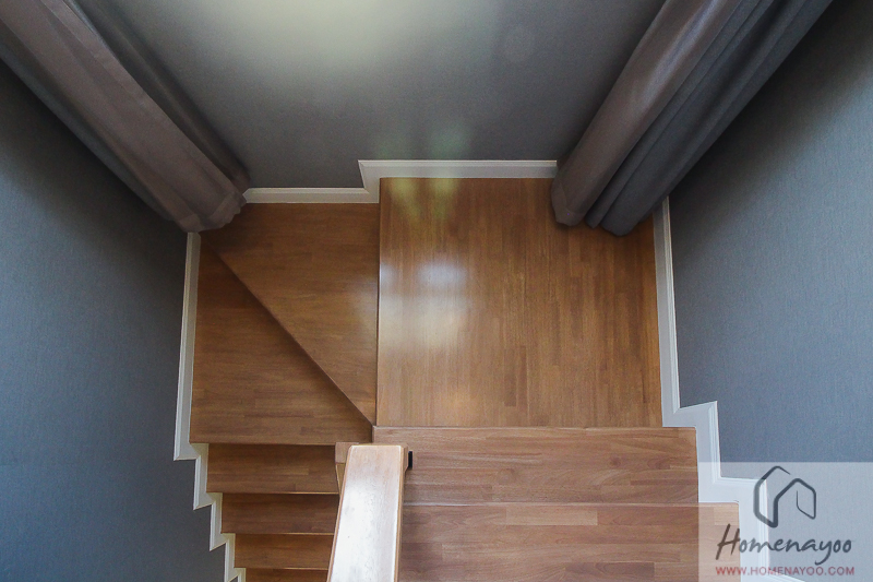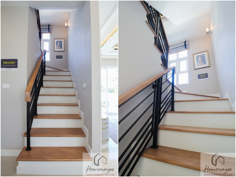 ขึ้นมาที่ชั้น 2 พื้นทั้งหมดจะปูด้วยไม้ลามิเนตหนา 8 มม. ฝ้าเพดานที่ชั้น 2 สูง 2.7 เมตร พื้นที่โถงบันไดจะเชื่อมต่อกับห้องพระ, พื้นที่พักผ่อน, ห้องนอนและห้องน้ำชั้นบนทุกห้อง