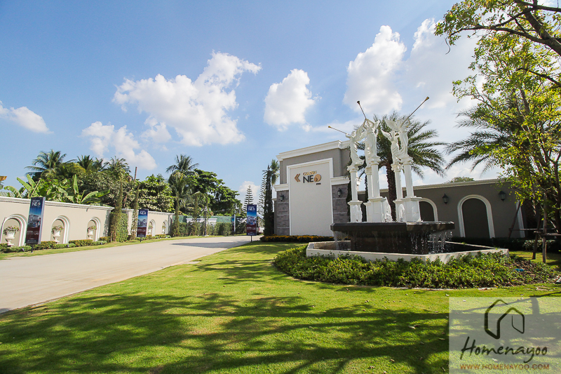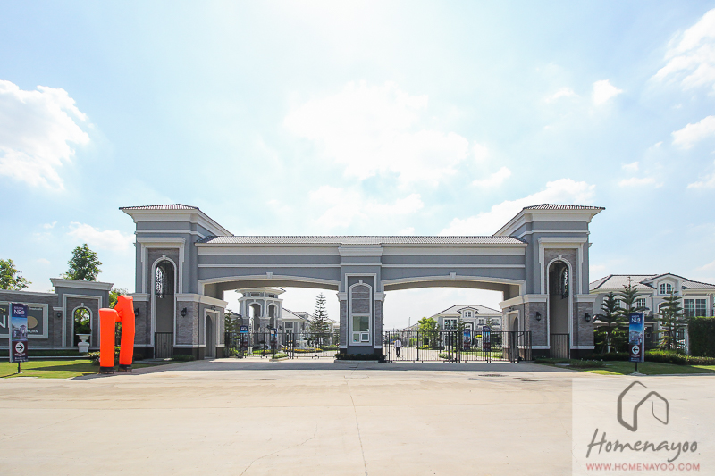 เรามาดูบรรยากาศตัวโครงการของจริงกันต่อเลยค่ะ เริ่มที่ด้านหน้าโครงการเป็น Main Gate ขนาดใหญ่ แยกซุ้มทางเข้า – ออก และทางคนเดินเท้าเข้าออกโครงการทั้ง 2 ฝั่ง ตรงกลางเป็นป้อมรปภ.