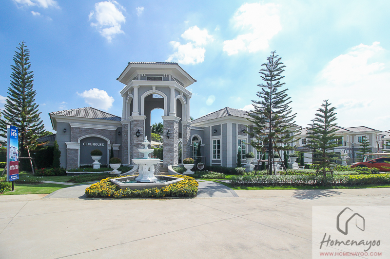 หน้าตาอาคารคลับเฮ้าส์ก็จะทำมาแกรนด์ๆ มีดีเทลงานตกแต่งทั้งลักษณะอาคาร, พื้นผิวผนัง และบัวเชิงผนังต่างๆ รวมไปถึงน้ำพุด้านหน้าทำให้ได้บรรยากาศสไตล์อังกฤษ