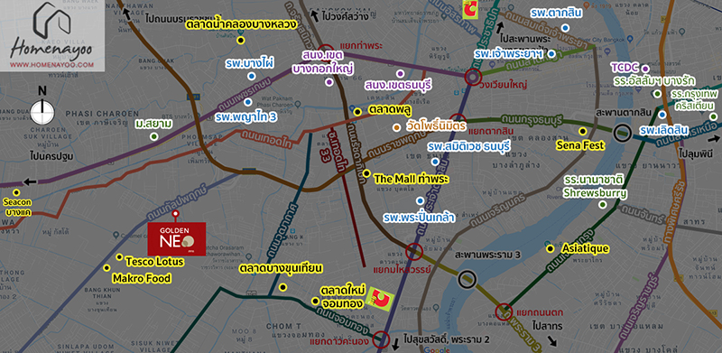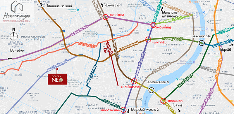 ทำเลที่ตั้งโครงการ : Golden Neo สาทร ตั้งอยู่ภายในที่ดินแปลงใหญ่ของ Golden Empire สาทร ซึ่งจะอยู่ติดถนนกัลปพฤกษ์ จากโครงการสามารถเข้า-ออกตัวเมืองได้สะดวก ไม่ว่าจะออกนอกเมือง ไปยังถนนกัลปพฤกษ์, ถนนเทอดไท, ถนนเพชรเกษม, ถนนราชพฤกษ์ ได้สะดวก หรือจะเข้าตัวเมืองไปยังถนนสาทร, สีลม ก็ สะดวกเช่นกัน ตัวโครงการยังไม่ไกลจากรถไฟฟ้า BTS วุฒากาศ เพียง 1.6 กม. (วัดเส้นทางโดยใช้เส้นทางจากถนนภาระจำยอม เชื่อมไปาทงซอยเอกชัย 8 ด้านหลังโครงการ)