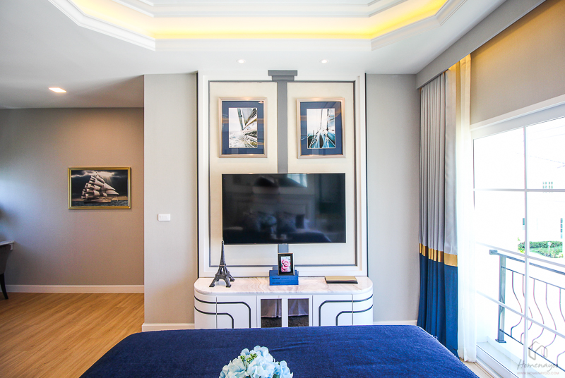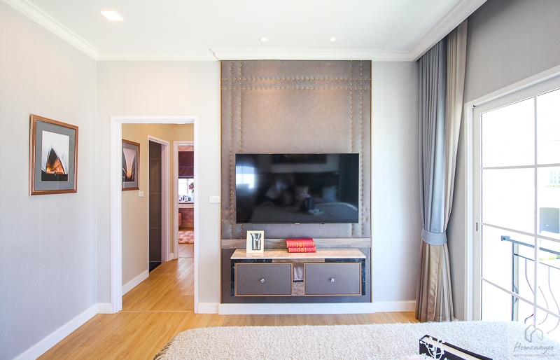 มองกลับไปฝั่งปลายเตียง ติดทีวีจอใหญ่ที่ผนังได้