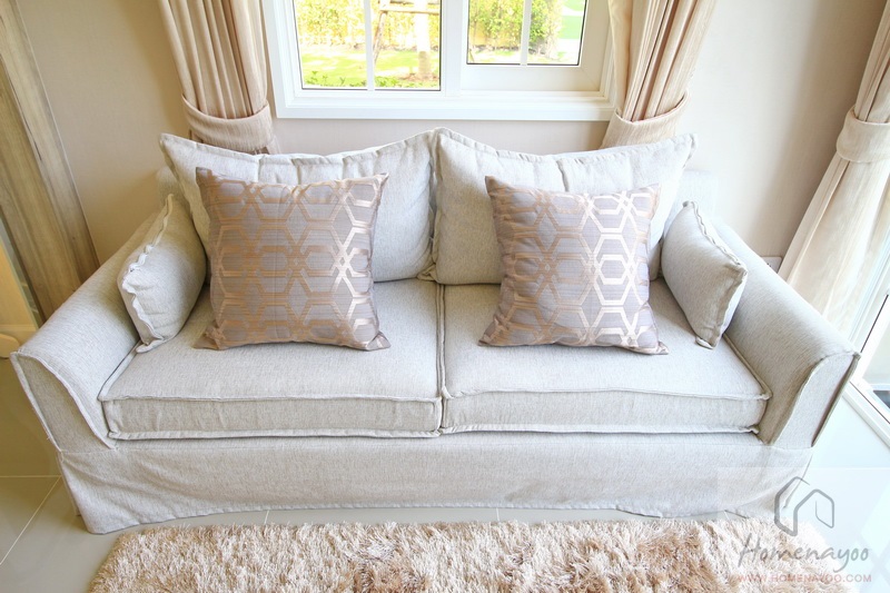 ส่วนแรกของบ้านจัดเป็นมุมพักผ่อน ที่สามารถเชื่อมต่อกับมุมทานอาหารได้อย่างสะดวก ตกแต่งเฟอร์นิเจอร์สไตล์คลาสสิกสีเอิร์ธโทนให้ดูเป็นไอเดีย โดยบ้านแปลงมุม จะมีหน้าต่างด้านข้างเพิ่มมาให้ 3 จุด ช่วยเปิดรับแสงธรรมชาติ และ เปิดถ่ายเทอากาศได้ดีเลยค่ะ
