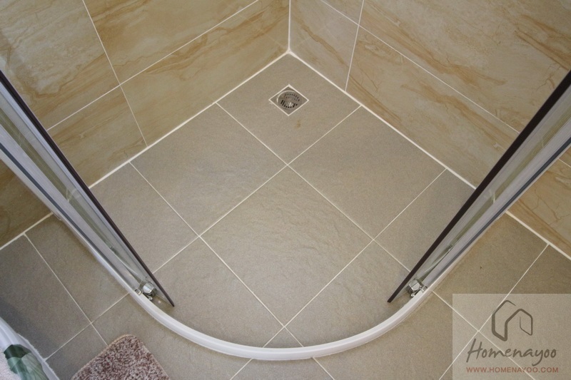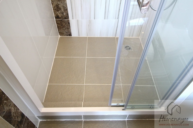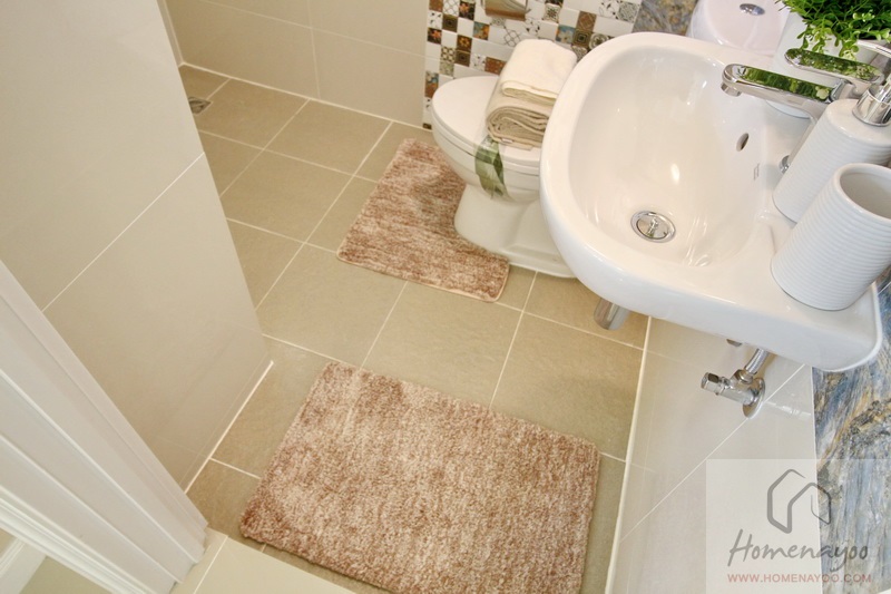 พื้นห้องน้ำลดระดับจากห้องนอนลงไป 5 ซม. เพื่อป้องกันน้ำไหลย้อนออกมาด้านนอก
