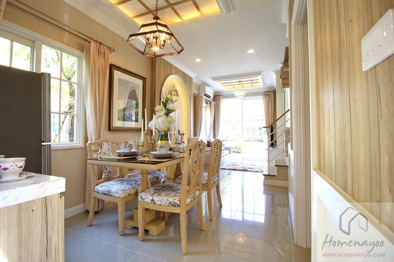 หลังโต๊ะทานข้าว มีพื้นที่เหลือกว้าง สามารถวางตู้เย็น และ ตู้เก็บของเพิ่มเติมเข้าไปได้