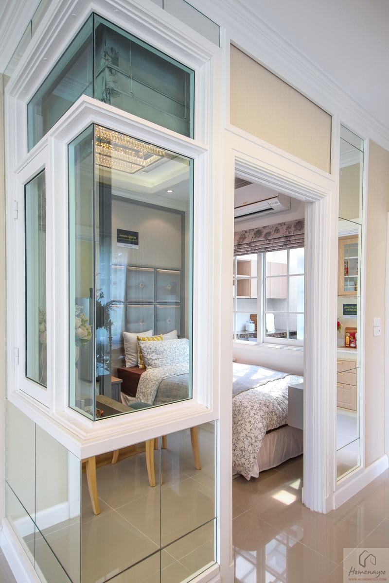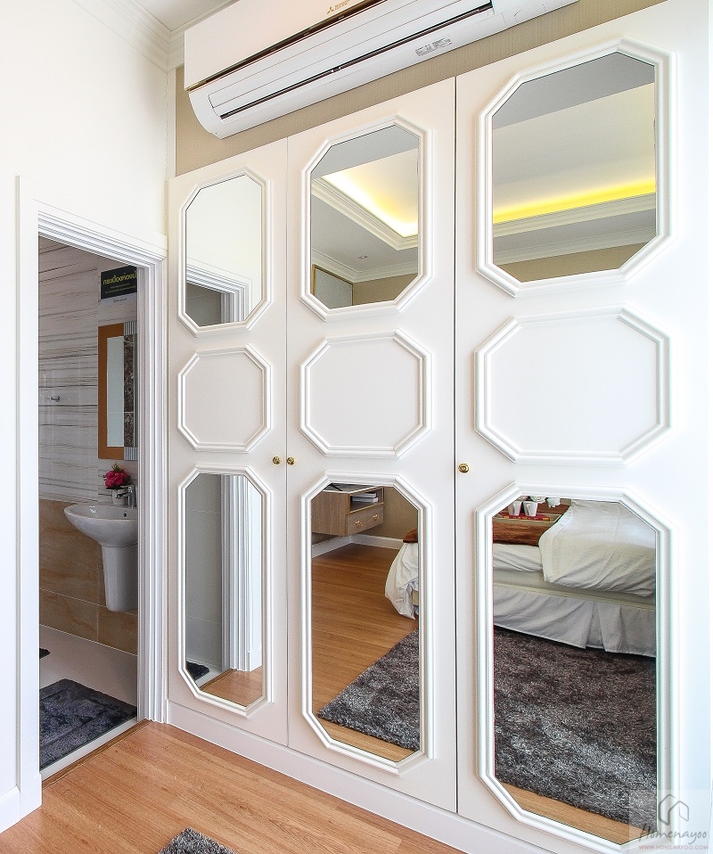 ข้างเตียงนอนฝั่งขวา ก่อนถึง Walk-in Closet มีพื้นที่เหลือให้จัดเป็นโต๊ะเครื่องแป้ง และ โต๊ะทำงานขนาด 1 ที่นั่งได้แบบนี้