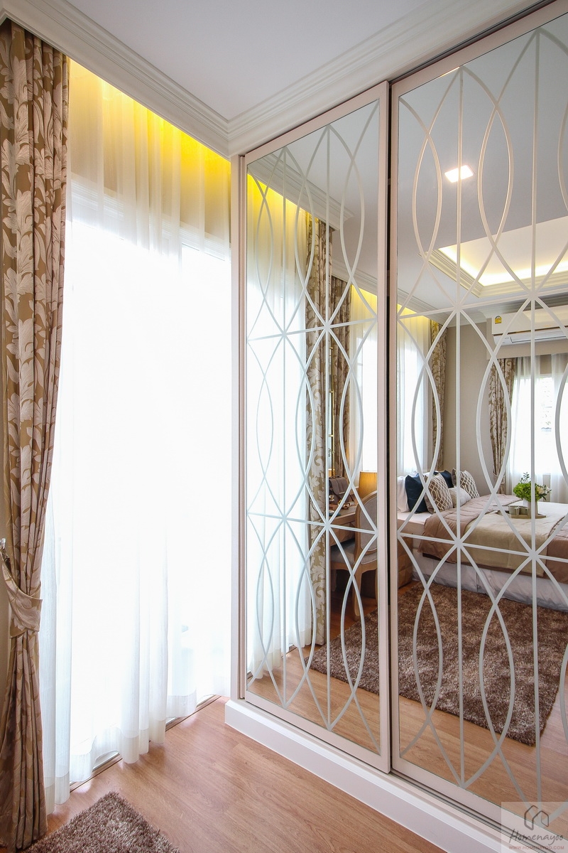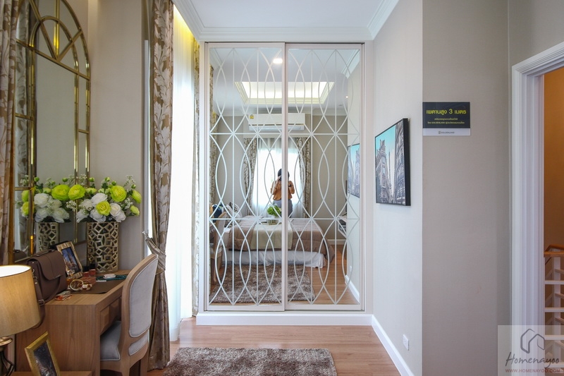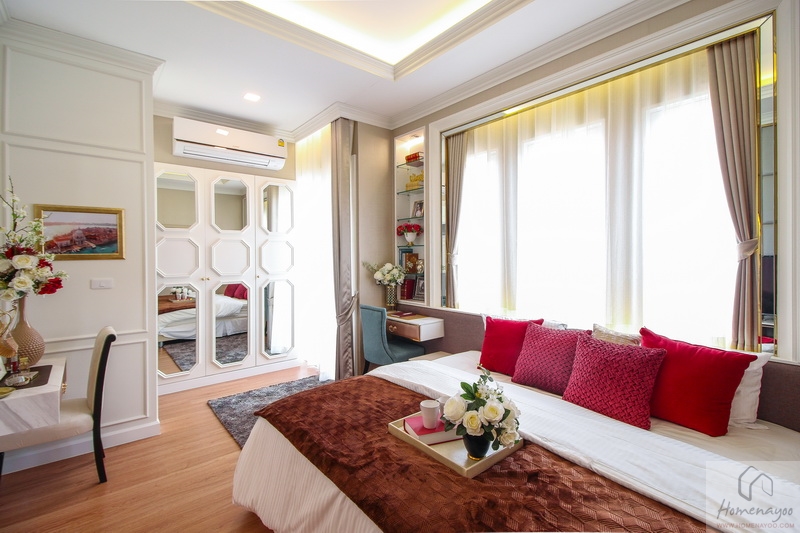 ผนังด้านในสุดบิวท์อินตู้เสื้อผ้าขนาดใหญ่ ความกว้างพอดีผนังห้องนอน สามารถเปลี่ยนเฟอร์นิเจอร์อื่น ๆ มาจัดวางได้ตามชอบ