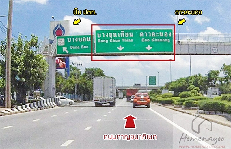 เราจะเริ่มต้นการเดินทางจากถนนกาญจนาภิเษกฝั่งตะวันตกช่วงเขตบางแค โดยเราจะมุ่งหน้าลงทางทิศใต้ไปทางดาวคะนอง ฝั่งซ้ายมือจะมีปั๊มน้ำมันปตท.เป็นจุดสังเกต