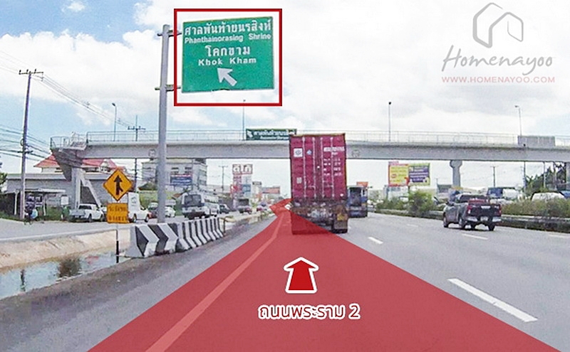 เมื่อลงจากวงแหวนเข้าสู่ถนนพระราม 2 แล้วให้รีบชิดขวาเพื่อเข้าถนนหลัก แต่เราก็สามารถเลือกใช้ทางคู่ขนานวิ่งไปสู่โครงการก็ได้เช่นกันค่ะ