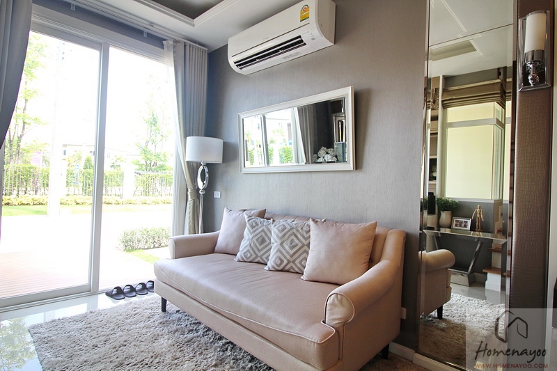 สิ่งอำนวยความสะดวก – หน้าโครงการตรงประตูทางเข้า-ออกติดตั้ง CCTV และมีระบบรักษาความปลอดภัยตลอด 24 ชมค่ะ ถนนหลักของโครงการมีต้นไม้, ไม้พุ่มและสนามหญ้าริมทางทำให้โครงการดูร่มรื่น ใกล้ประตูทางเข้าโครงการจะเป็นที่ตั้งของ Clubhouse ที่จะมีสระว่ายน้ำและฟิตเนส แต่ตอนนี้ฟิตเนสจะเป็นสำนักงานชั่วคราวไปก่อน ติดกันนั้นจะมีสวนส่วนกลางที่มีทางเดินรอบสวน พื้นที่นั่งเล่นในสวนและสนามเด็กเล่น