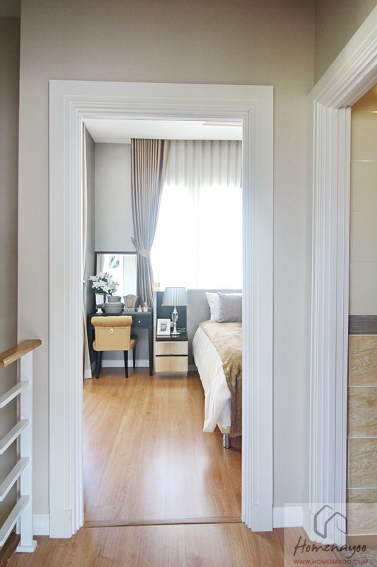 ห้องที่อยู่ติดกับบันไดคือห้องนอน 3 พื้นเป็นลามิเนตแบบเดียวกับโถงบันได ตัวจบเป็นลามิเนตสีเดียวกัน