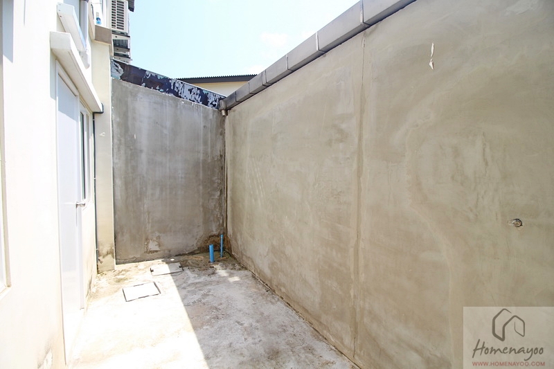 ถัดไปจะเป็นพื้นที่หลังบ้านค่ะ บ้านจริงด้านหลังจะเป็นพื้นคอนกรีตฉาบเรียบแต่บ้านตัวอย่างทำเป็นครัว สามารถเอาไปเป็นไอเดียในการแต่งบ้านได้เลยค่ะ