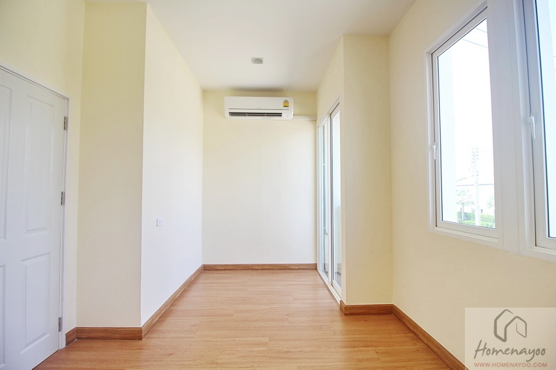 ชั้นบนเป็นห้องนอน 3 ห้อง ห้องน้ำ 2 ห้อง พื้นเป็นลามิเนตโทนสีน้ำตาล และยังมีพื้นที่สำหรับห้องพระด้วยค่ะ
