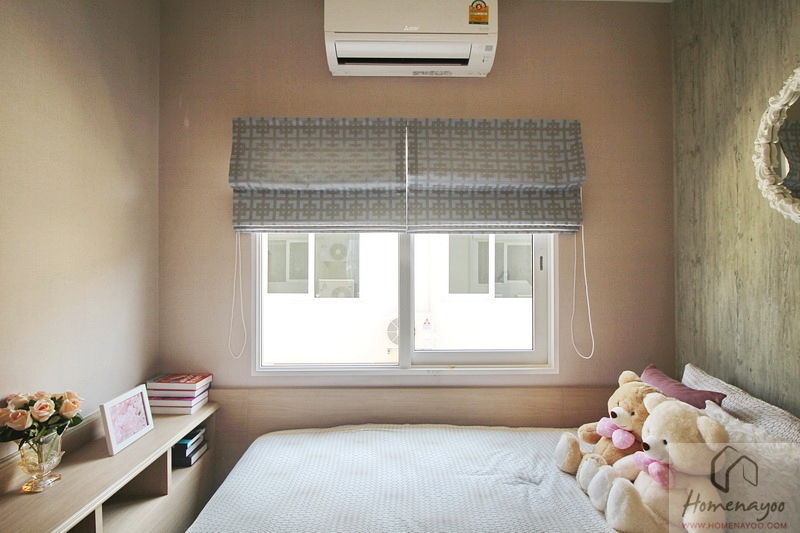 เตียงวางขนาด 5-6 ฟุตได้ ถ้าวางเตียง 5 ฟุตแบบบ้านตัวอย่างนี้ ด้านข้างก็จะมีพื้นที่เหลือให้วางเฟอร์นิเจอร์อื่นๆ