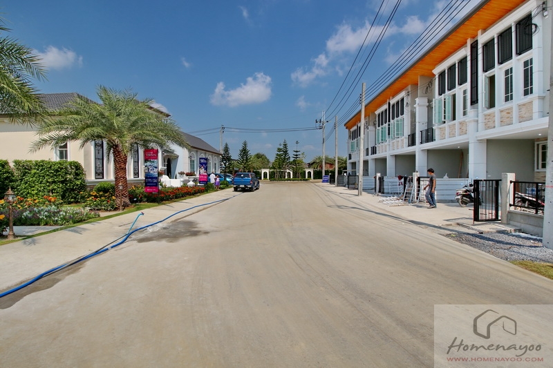 ถนนเมนช่วงหน้าสำนักงานขาย หรือในอนาคตก็คือ สโมสรของโครงการนั่นเอง