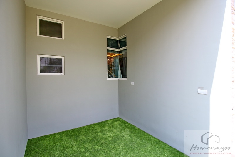 ลานซักล้างด้านหลัง ความพิเศษคือ ขอบกำแพงที่สูงกว่าปกติ เอื้ออำนวยให้การต่อเติมครัวไทยเป็นเรื่องง่าย