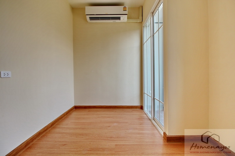 ภายในห้องนอนชั้นล่างนี้ สามารถวางเฟอร์นิเจอร์พื้นฐานได้ครบถ้วนทั้ง เตียง ตู้เสื้อผ้า และโต๊ะอเนกประสค์