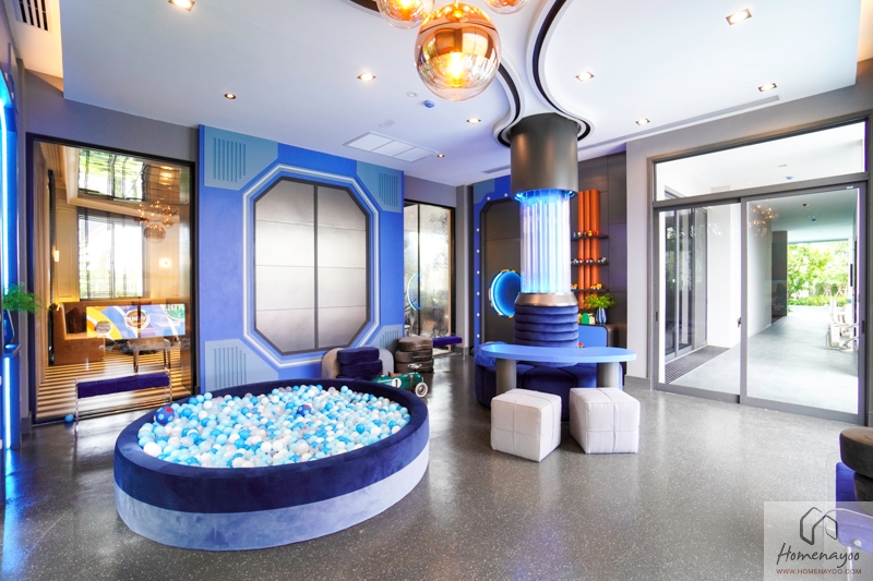 Gym พร้อมเครื่องออกกำลังกายครบครันทั้ง Cardio และ Weight Training Machine ออกกำลังกายได้ครบทุกส่วน, Kid’s Club สำหรับคุณหนู ๆ พร้อมโซน Outdoor Playground, Main Park ร่มรื่นสไตล์ยุโรป ขนาดกว่า 1 ไร่ มีมุมสนามเด็กเล่น และศาลาสำหรับนั่งพักผ่อนชมวิวสวน,