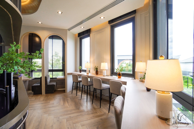 ภายในมีการเตรียมมุมนั่งเล่นพักผ่อนไว้ให้หลายมุม ใช้นั่งพักผ่อนหรือรับรองแขกได้ และยังสามารถใช้เป็น Co-Working Space ได้อีกด้วย