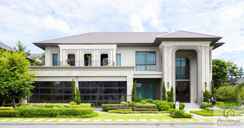บ้านตัวอย่าง CASTELLANO ที่ดินเริ่มต้น 167.5 ตร.ว. ภายนอกบ้านตกแต่งมาในสไตล์ Modern Classic ดูสุขุม โทนสีจะเน้นไปทางสีเทาและกระเบื้องลายหินอ่อนเรียบหรู โดยบ้าน Type นี้จะเป็นหลังใหญ่สุดของโครงการ การออกแบบหน้าตาบ้านเลยทำให้ดูแกรนด์มากยิ่งขึ้นด้วยการใส่หลังคา Gable ตรงกลางบ้านทำให้บ้านดูสมมาตรมากขึ้น ส่วนโครงสร้างบ้านใช้ระบบ Conventional ก่ออิฐมวลเบา Q-CON ทำให้สามารถต่อเติมบ้านได้ในอนาคต
