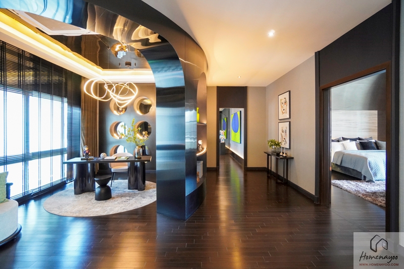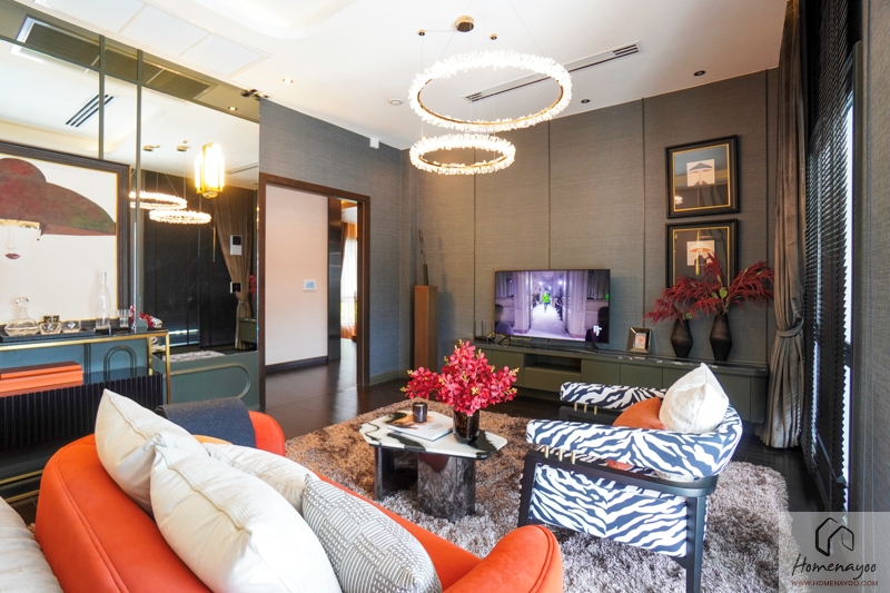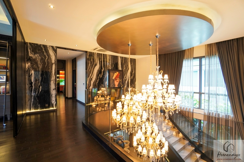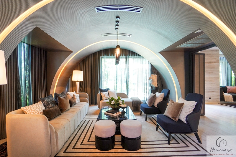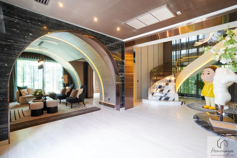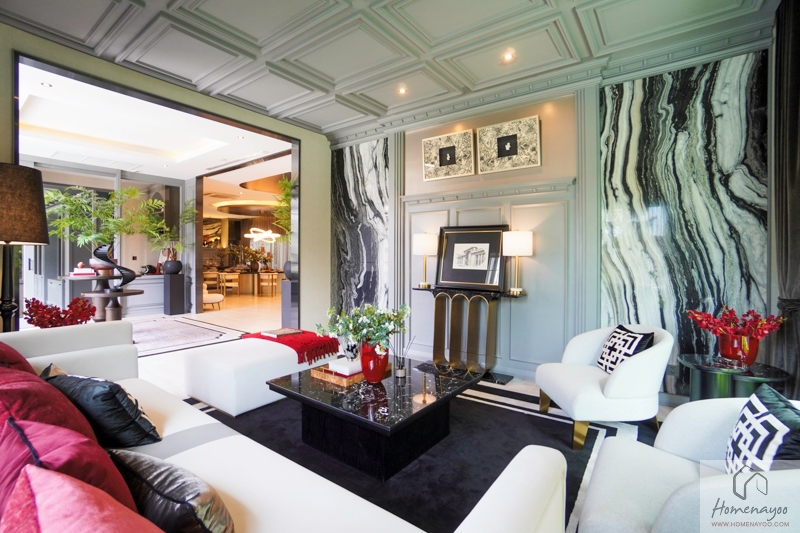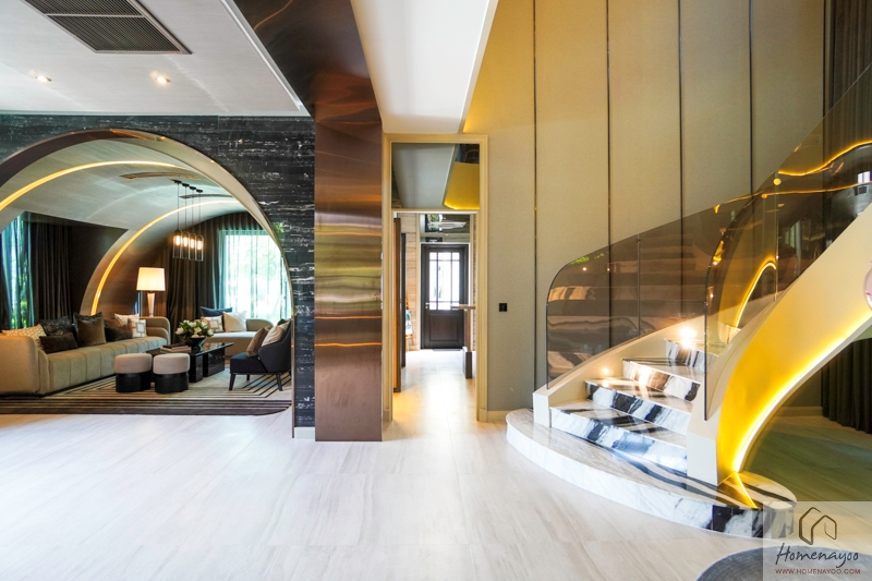เข้ามาภายในบ้านส่วนแรกจะเป็น Grand Living Area บ้านตัวอย่างจัดให้เป็น Foyer สำหรับการพักแขกก่อนเข้าสู่พื้นที่ส่วนอื่น ๆ ของบ้าน ทางฝั่งซ้ายเชื่อมต่อกับ Double Living Area และตรงเข้าไปเชื่อมต่อกับ Space ของ Spiral Staircase