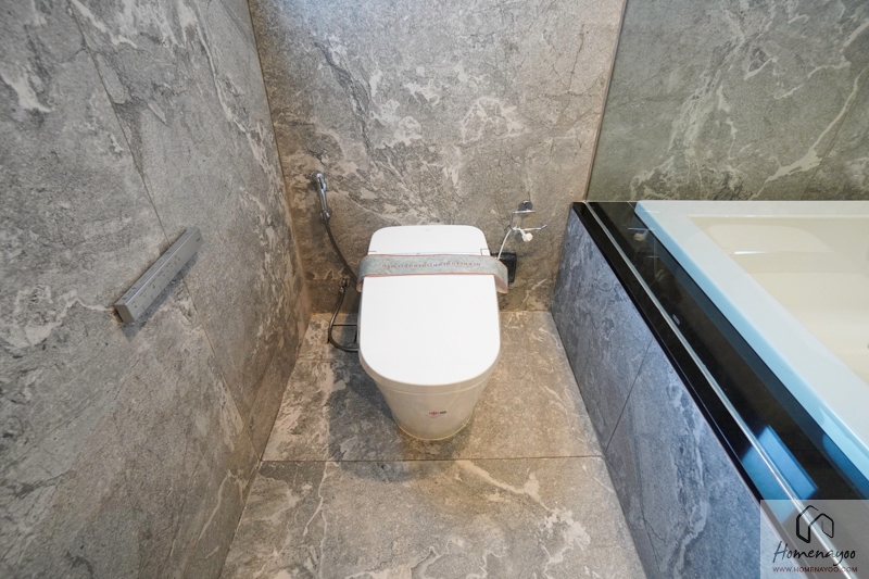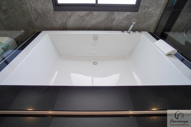 นอกจากอ่างล้างมือ โถสุขภัณฑ์รุ่นอัตโนมัติ และโซน Shower แล้ว ก็จะมีอ่างอาบน้ำมาให้ด้วยค่ะ ใกล้เคียงกับห้อง Master Bedroom เลย