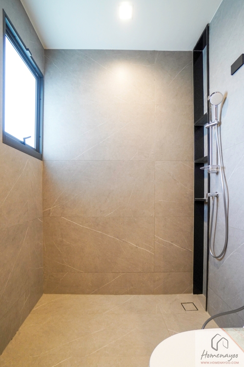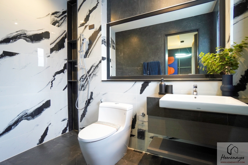 ซึ่งแน่นอนว่าเราได้เป็นห้องน้ำแบบ Full Function มีการอัปเกรดงานสุขภัณฑ์และงานกระเบื้องตกแต่งให้หรูมากยิ่งขึ้น