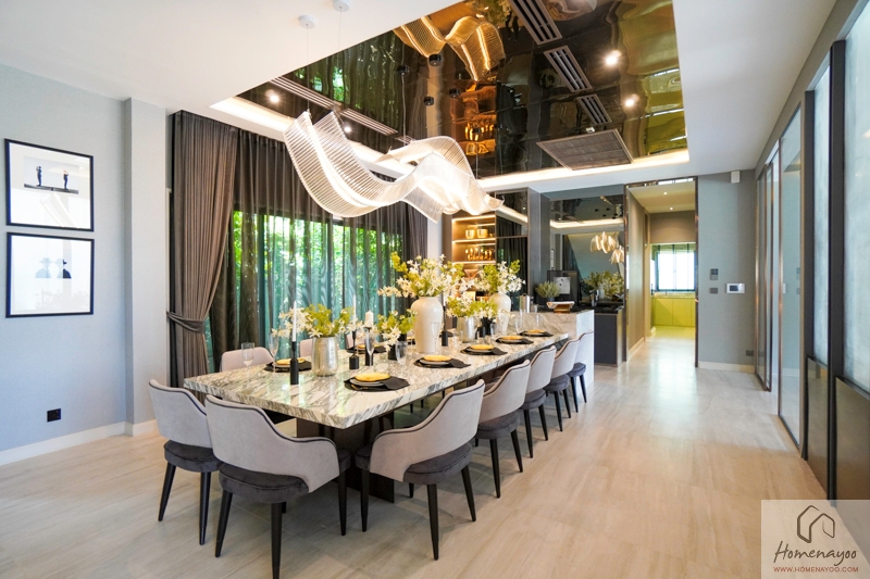 เรามาดูโซน Dining Area กันต่อค่ะ บ้านตัวอย่างจัดโต๊ะขนาด 12 ที่นั่งมาให้ดูก็ยังได้ Space แบบสบาย ๆ