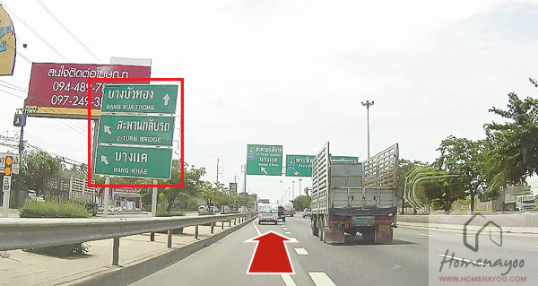 ให้เบี่ยงไปถนนกาญจนา ไป อ.บางบัวทองค่ะ