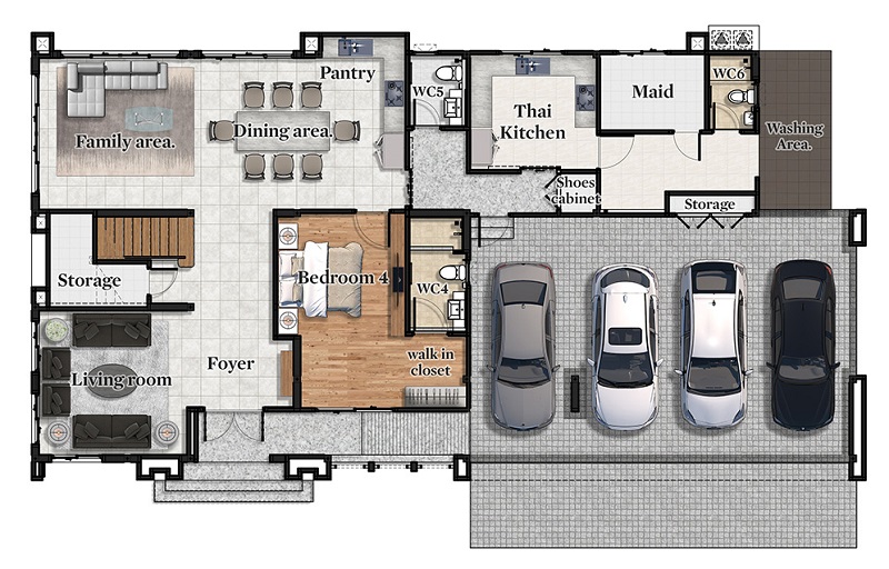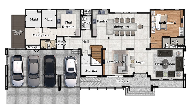 | จำนวนห้อง | 4-5 ห้องนอน, 5-6 ห้องน้ำ, Eldercare solution, ห้องแม่บ้าน* |
