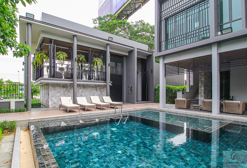 สาธารณูปโภค – ส่วนกลางที่นี่ออกแบบมาได้น่าใช้งานดี มี Club House 2 ชั้นด้านหน้าโครงการ โดยชั้นล่างจะเป็นสระว่ายน้ำระบบเกลือขนาด 13 x 8 ม. แบ่งสระเด็ก มีพื้นที่พักผ่อนริมสระ รอบๆสระมีพุ่มไม้บังสายตา มีห้องรับรองขนาดใหญ่ ภายในฝ้าสูงโปร่งพร้อมกระจกหน้าต่างบานสูง จัดวางชุดโซฟาไว้ตามมุมต่างๆ ไว้นั่งผักผ่อน หรือไว้ให้แขกนั่งรอไม่ต้องเข้าไปที่บ้านเราก็ได้ มีห้องน้ำแยกชายหญิง ที่ชั้น 2 จะเป็นห้องฟิตเนสวางเครื่องออกกำลังกายมาหลากหลาย วิวมองลงมาเห็นสระว่ายน้ำ อีกโซนจะมีพื้นที่นั่งพักผ่อนเป็น Terrace แบบเปิดรับลมชมวิว วางชุดโต๊ะนั่งมาให้ ฝั่งตรงข้าม Club house จะมีสวนพักผ่อนมาให้ มีพื้นที่โล่ง และพื้นที่นั่งพักผ่อนใต้ต้นไม้