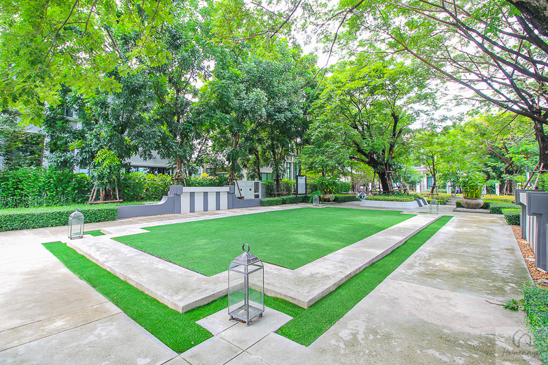 และมีสวนอีกจุดอยู่ตรงช่วงกลางพื้นที่โครงการ เป็นสวนขนาดใหญ่ ภายในสวนมีทั้งไม้ใหญ่ที่แผ่กิ่งก้านให้ร่มเงา และไม้พุ่ม มีสนามหญ้าโล่งๆไว้ทำกิจกรรมต่างๆได้ มีบ่อน้ำพุตกแต่ง มี Pavilion ไว้ให้นั่งพักผ่อน มีทางเดินหรือไว้วิ่งออกกำลังกายก็ได้ และมีสนามเด็กเล่นมาให้ด้วย