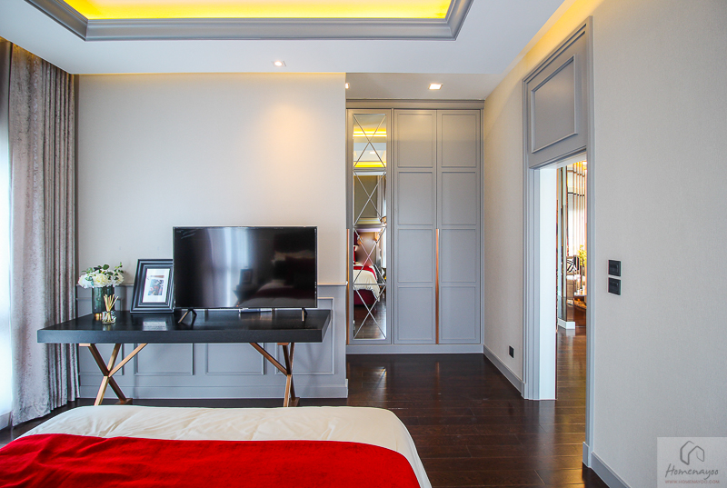 หน้าห้องน้ำจะเป็นส่วน Walk in closet จัดวางตู้ได้ทั้ง 2 ฝั่ง เก็บเสื้อผ้าได้เยอะดีครับ