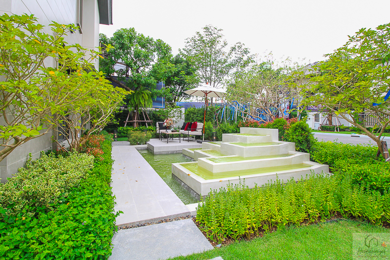 ป้ายโครงการดูโดดเด่น มองเห็นชัดเจน ตกแต่งด้วย Water Feature
