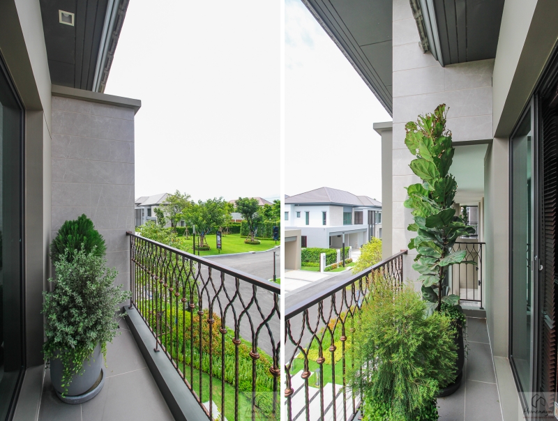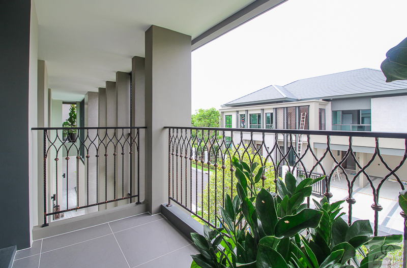 เปิดออกมาจะเป็นระเบียงขนาดประมาณ 3.16 x 2.7 ม. ระเบียงส่วนนี้จะมีระแนงฉลุบังสายตาอยู่ด้วย ซึ่งเป็นส่วนของ Facade ด้านนอกนั่นเอง