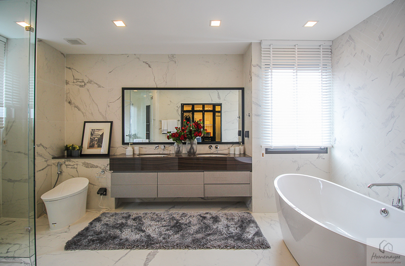 อ่างล้างหน้าแบบ His & Her ฝังเคาน์เตอร์มาให้เรียบร้อย