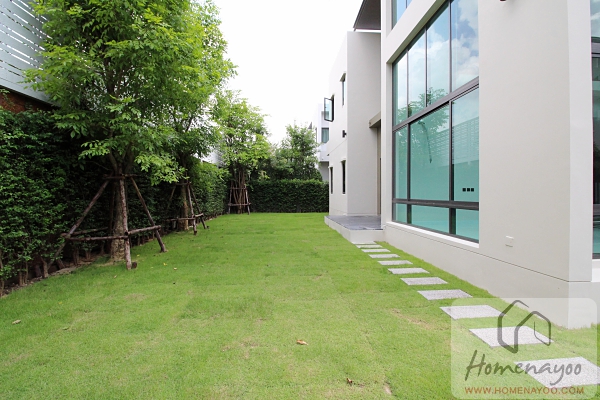 พร้อมมีระบบสัญญาณกันขโมย Magnetic & Motion Sensor ทุกหลัง จัดสวนปลูกต้นไม้ใหญ่ ไม้พุ่มและปูสนามหญ้าได้ตามที่เห็น