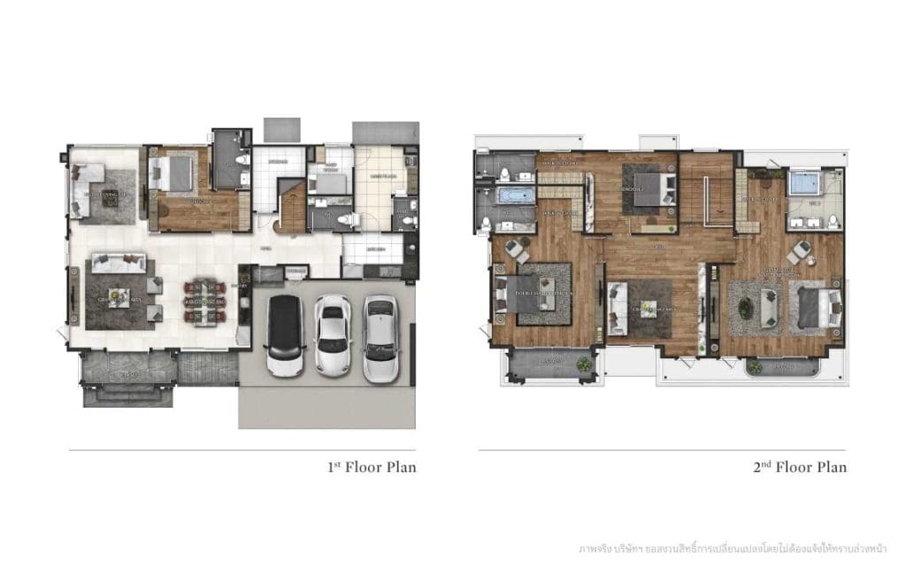 Double Master Bedroom (ห้องนอน 2) พื้นที่ขนาดใหญ่เทียบเท่า Master Bedroom มีพื้นที่สำหรับ Walk-in closet และห้องน้ำในห้องนอนพร้อมอ่างอาบน้ำ ส่วนห้องนอน 3 และห้องนอน 4 มีพื้นที่ในห้องมาให้เยอะเช่นกัน วางเตียงนอน 5-6 ฟุตได้สบาย ๆ ทุกห้องมีห้องน้ำในห้องนอนพร้อมส่วน Walk-in closet