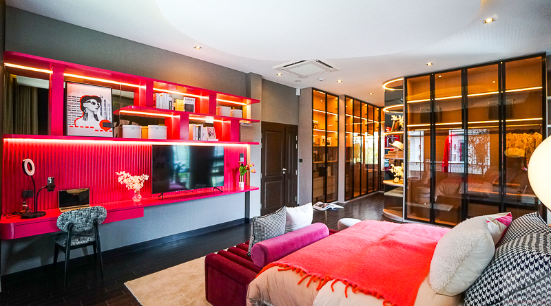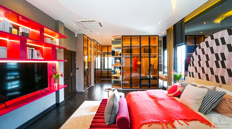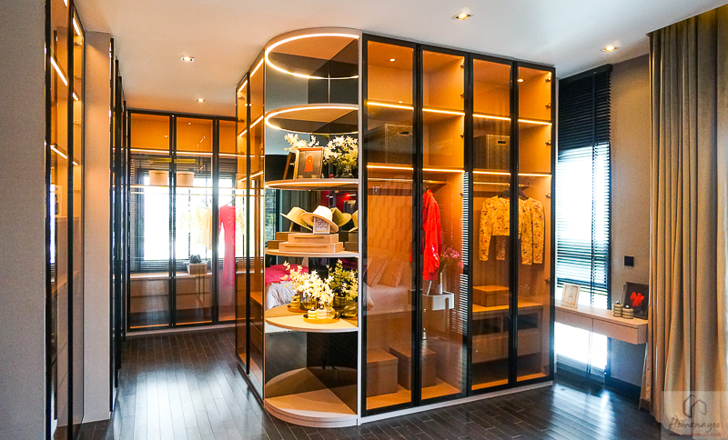 พื้นที่ Walk-in closet ขนาดใหญ่ จัดวางฟังก์ชันการใช้งานได้ตามต้องการ บ้านตัวอย่างทำตู้เสื้อผ้าขนาดใหญ่ 3 ฝั่ง พร้อมโต๊ะเครื่องแป้ง แบ่งได้ตามต้องการ