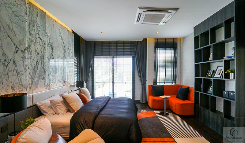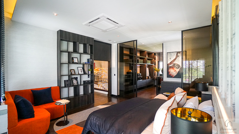 ภายใน Master Bedroom ให้พื้นที่มาขนาดใหญ่ ภายในแบ่งฟังก์ชันเป็นสัดส่วนทั้ง ส่วนห้องนอน, มุมนั่งพักผ่อน, Walk in closet และห้องน้ำ