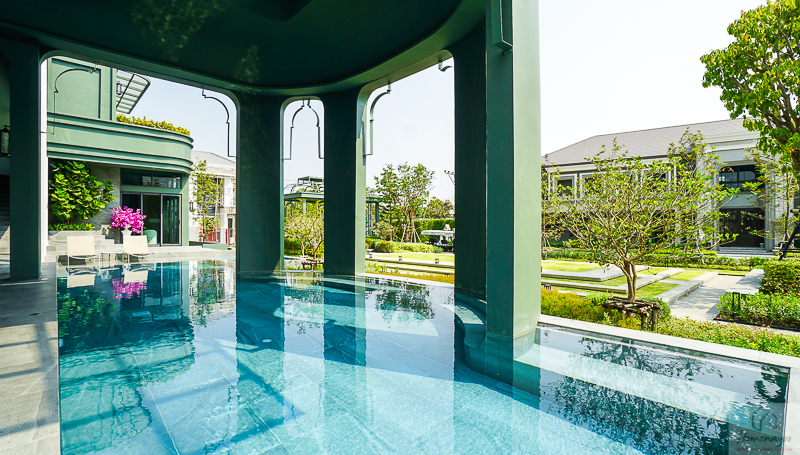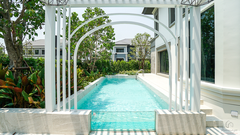 แบบบ้าน Trinita บ้านขนาดใหญ่สุดของโครงการ พื้นที่ใช้สอยมากถึง 780 ตร.ม. ที่จอดรถ 4 คัน แบบ Garage พร้อมประตูเปิด-ปิดอัตโนมัต มีสระว่ายน้ำส่วนตัวข้างบ้าน