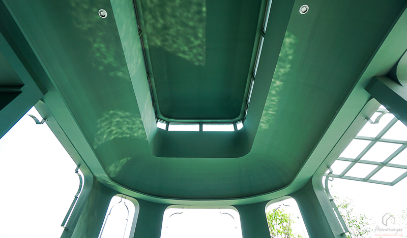 วิวมองออกไปจาก Pavilion จะเห็นสวนพักผ่อนด้านนอก