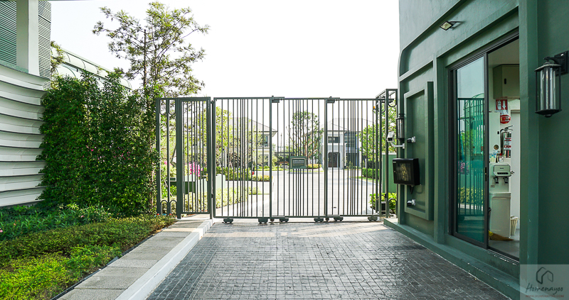 ประตูโครงการแยกทางเข้า-ออก เป็นประตูเลื่อนอัตโนมัติ ด้านข้างมีประตูแยกสำหรับคนเดินเข้าออก มีป้อม รปภ. ตรงกลาง