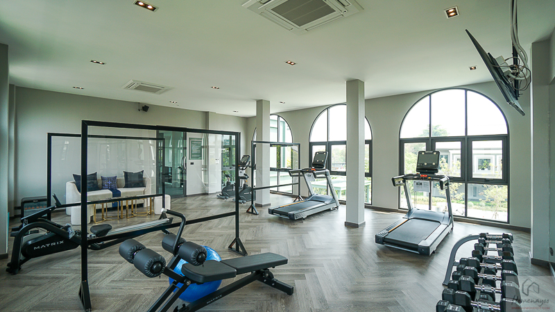 สระว่ายน้ำระบบเกลือแบบ Semi-Outdoor แยกสระเด็ก พร้อมส่วน Jacuzzi ไว้นั่งแช่น้ำนวดตัวชมวิวสวน ห้องฟิตเนสพร้อมเครื่องออกกำลังกายครบครัน และมีพื้นที่นั่งพักผ่อนตรงระเบียงไว้รับลม ชมวิวสวนและสระว่ายน้ำได้