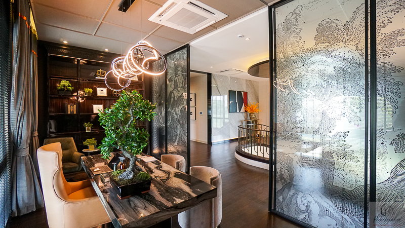 ด้านในวางเป็นชุดโซฟาขนาดใหญ่ไว้นั่งพักผ่อน ในห้องมีช่องแสงขนาดใหญ่ และประตูเชื่อมออกพื้นที่ข้างบ้านได้