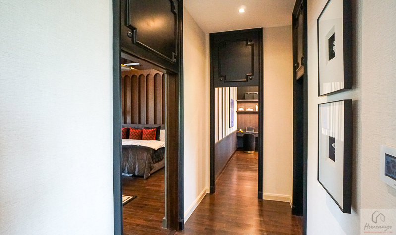หน้าห้องน้ำมีพื้นที่สำหรับ Walk-in closet มาให้ วางตู้เสื้อผ้าขนาดใหญ่พร้อมชุดโต๊ะเครื่องแป้งได้