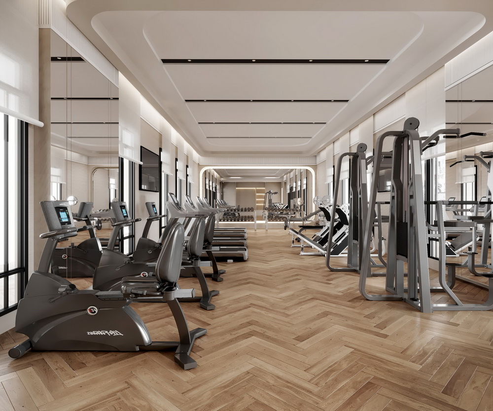ภาพและบรรยากาศจำลองภายใน Fitness พร้อมเครื่องออกกำลังกายที่ครบครัน ทันสมัย