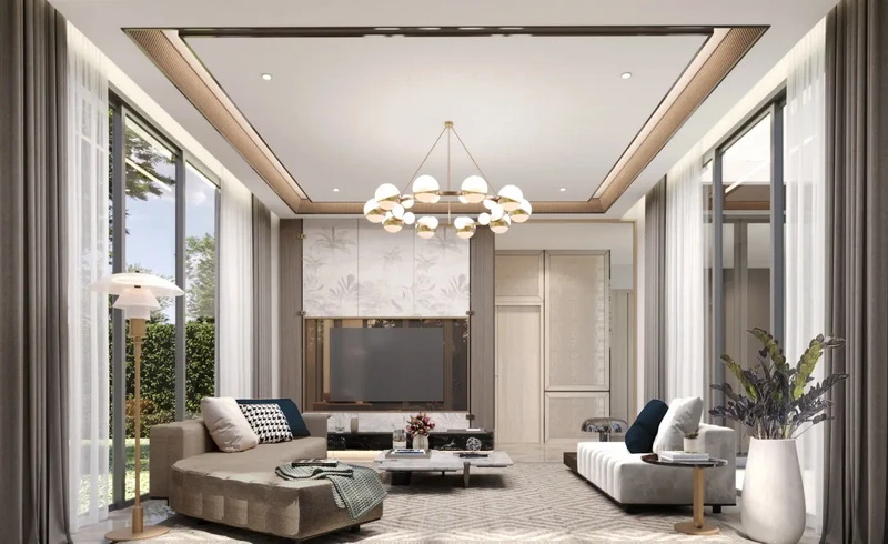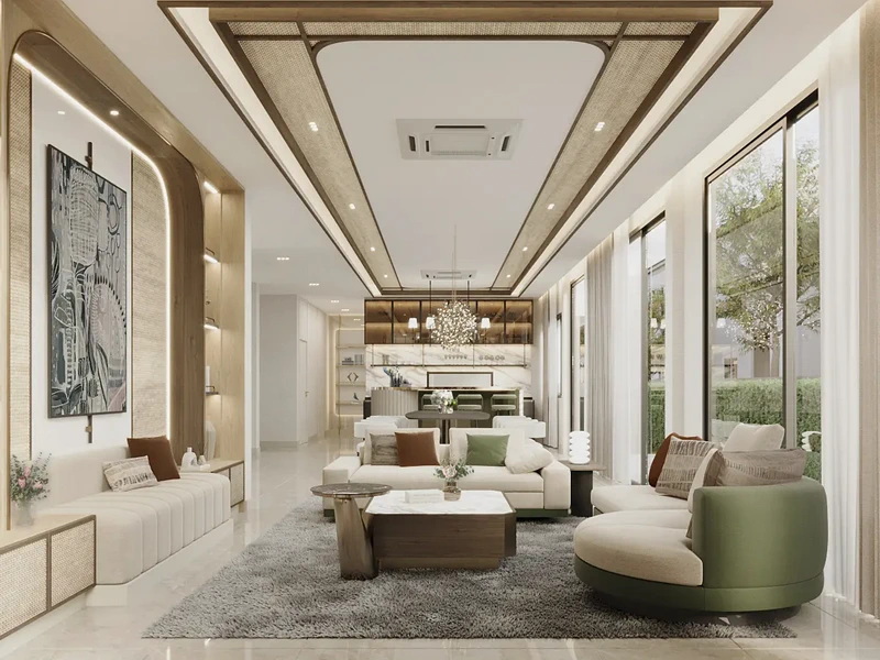 ภาพและบรรยากาศจำลองบริเวณโถงต้องรับในแบบบ้าน Size L