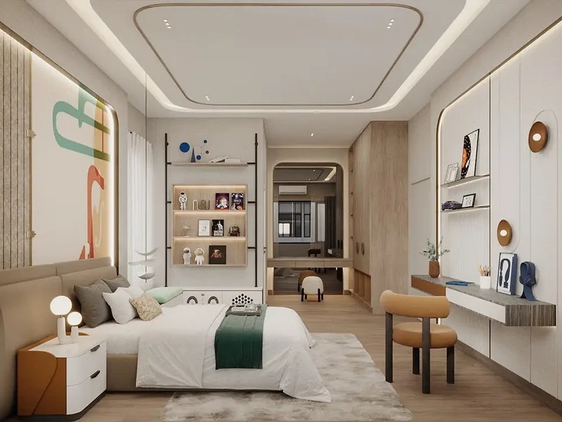 ภาพและบรรยากาศจำลองภายในห้องนอนรองในแบบบ้าน Size L